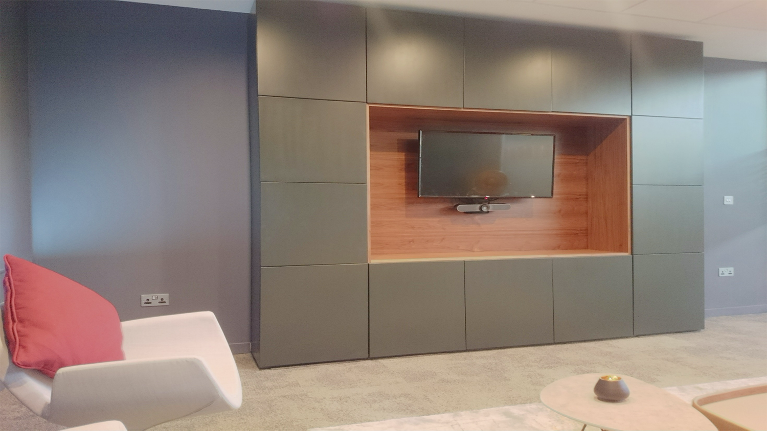 - Custom made media unit to facilitate Zoom meetings in the new intimate meeting setting.